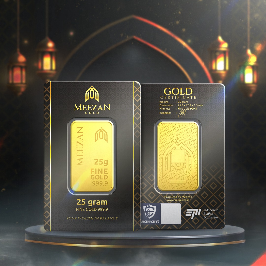 Meezan Gold 25 Gram merupakan salah satu varian emas fine gold yang didistribusikan melalui Emas Perak Indonesia